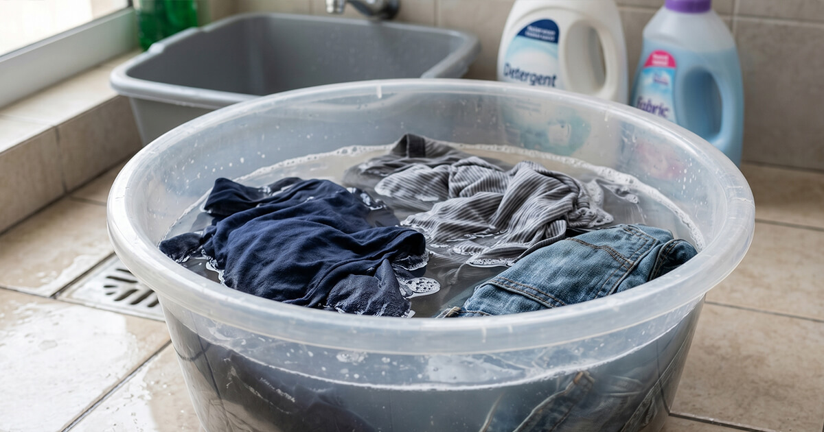 因為一般衣服直接丟進洗衣機,清潔時間其實很短,成分來不及深入纖維。但浸泡可以先把汗垢和油脂分解,讓後續清洗更有效。